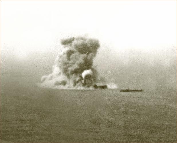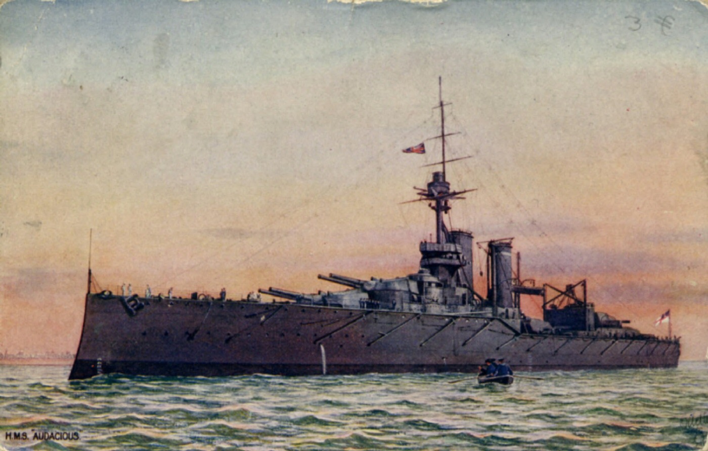 Azonban 8 óra 45 perckor a hajóoszlopban harmadikként haladó, alig egyéves HMS Audacious csatahajót váratlanul robbanás rázta meg és az óriás lassulni kezdett. A fedélzeten mindenki egy lesben álló tengeralattjáró orvtámadására gondolt, azonban a csaknem 26 000 tonnás hadihajó végzetét valójában egy kisméretű, de annál veszedelmesebb fegyver, a tengeri érintőakna okozta.