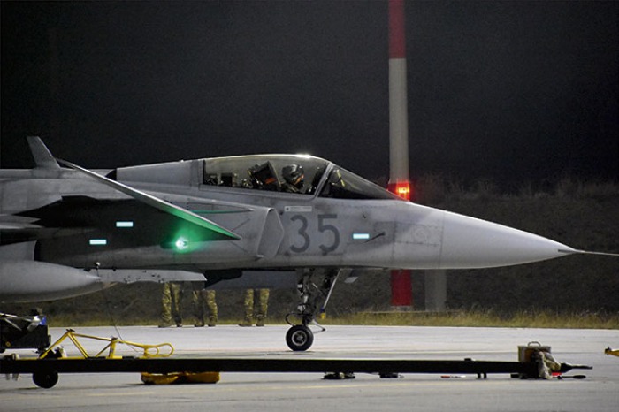 Az éjszakai bevetések fontos segédeszköze a Litening célmegjelölő konténer, amelynek forgatható optikája a sötétben is „lát”, például azt a pontot is, amelyet a JTAC megjelölt lézerrel. A levegőből ugyanis nagyon nehéz, vagy éppen lehetetlen a kisméretű, álcázott célok felderítése. Újdonság, hogy szükség esetén a Gripenek végzik a célmegjelölést a Mi-24-esek számára, mivel azok ugyancsak képessé váltak már az éjszakai gépágyúzásra.